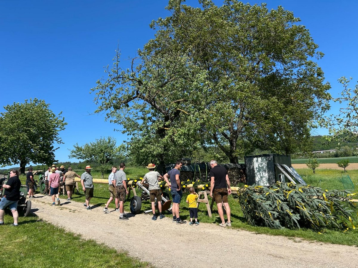 2) Maibaum schälen, schmücken und aufstellen